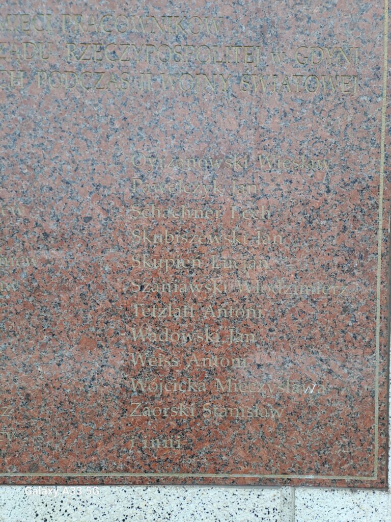 na murze Urzędu wisi także tablica z nazwiskami pracowników Komisariatu Rządu RP, zamordowanych przez Niemców. Nazwiska ledwie widoczne, wyblakłe, mocno oszczędzano na wykonaniu tej tablicy. Nikt jej nie odnawia. Szkoda, bo w przeciwieństwie do tamtych sowieckich, jest bardzo ważna dla świadomości narodowej. Zachowało się niemieckie zdjęcie, pokazujące, jak niemiecki żołnierz zrywa godło RP z budynku Komisariatu. Pod spodem bezczelny podpis: „We wszystkich starych niemieckich miastach usuwa się polskie orły”… Gdynia nie była nigdy „starym niemieckim miastem”, była wspólnym dziełem Polaków po odrodzeniu państwa w roku 1918. Przypomniał to w lutym prezydent RP Karol Nawrocki, w przemówieniu, z okazji 100-lecia nadania praw miejskich Gdyni. Senat RP ustanowił rok 2026 Rokiem Gdyni! Trzeba pielęgnować pamiątki z przeszłości, oddzielać prawdę od propagandy, bohaterów od zdrajców. Nie tylko w Gdyni, ale tu relikty zbrodniczego komunizmu bolą wyjątkowo!